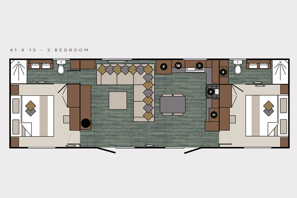 The LanghamPerception shifting design, centred around luxury breaks. The Langham’s ground-breaking layout, providing for the first time two equal master bedroom suites, allowing two couples to holiday together in equal luxury. Both feature six-foot super king size beds, with the second master having the capability to be configured into two three-foot beds, using hotel zip and link technology, if required. The Langham's 5-star, hotel quality accommodation continues with brimming innovation, an open plan layout greets guests with a comfortable corner sofa, Bluetooth speakers, cocktail bar, feature coffee table and a well-proportioned kitchen/dining area. StylingRich in texture and style. Throughout the living space The Langham’s blend of dark wood and light fabrics blend seamlessly with opulent golds, silvers and warm greys. Elements of nature add a softer hue to connect the bedroom and washroom styling. Images